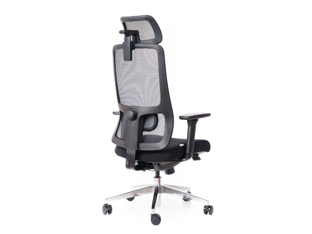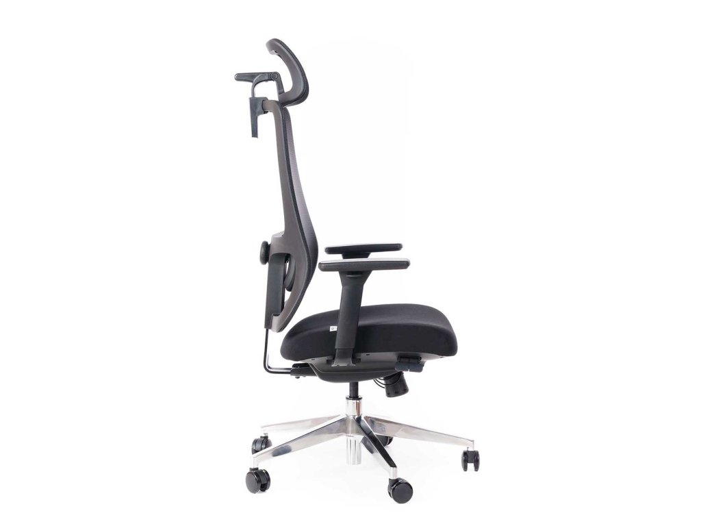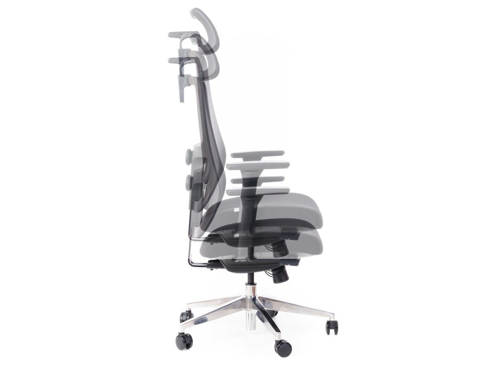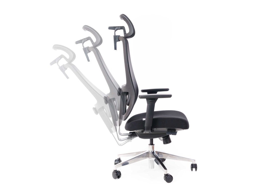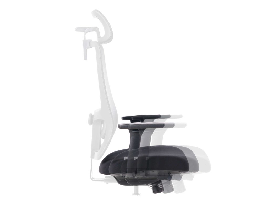 Začneme nastavením hlavové opěrky. U této fajn židle si upravíte výšku, hloubku a úhel síťované hlavové opěrky dle vlastní potřeby. Rovná záda bez bolesti obstará kvalitní síťovaný opěrák s výškově i hloubkově nastavitelnou bederní opěrkou. A pro ty, kterým se bude zdát opěrák nízký, zafunguje mechanizmus výškového nastavení celého opěráku. Třešinkou na této dokonalé židli je už jen synchronní mechanika, která se ovládá přímo na sedáku pomocí decentních páček. Ty Vám umožní celý takto perfektně nastavený opěrák ještě zablokovat v několika polohách nebo ponechat příjemné houpání. Máte delší nohy a sedák se Vám zdá krátký? Pak není nic jednoduššího než použít páčku na levé straně sedáku a posunout si sedák dle potřeby směrem dopředu.